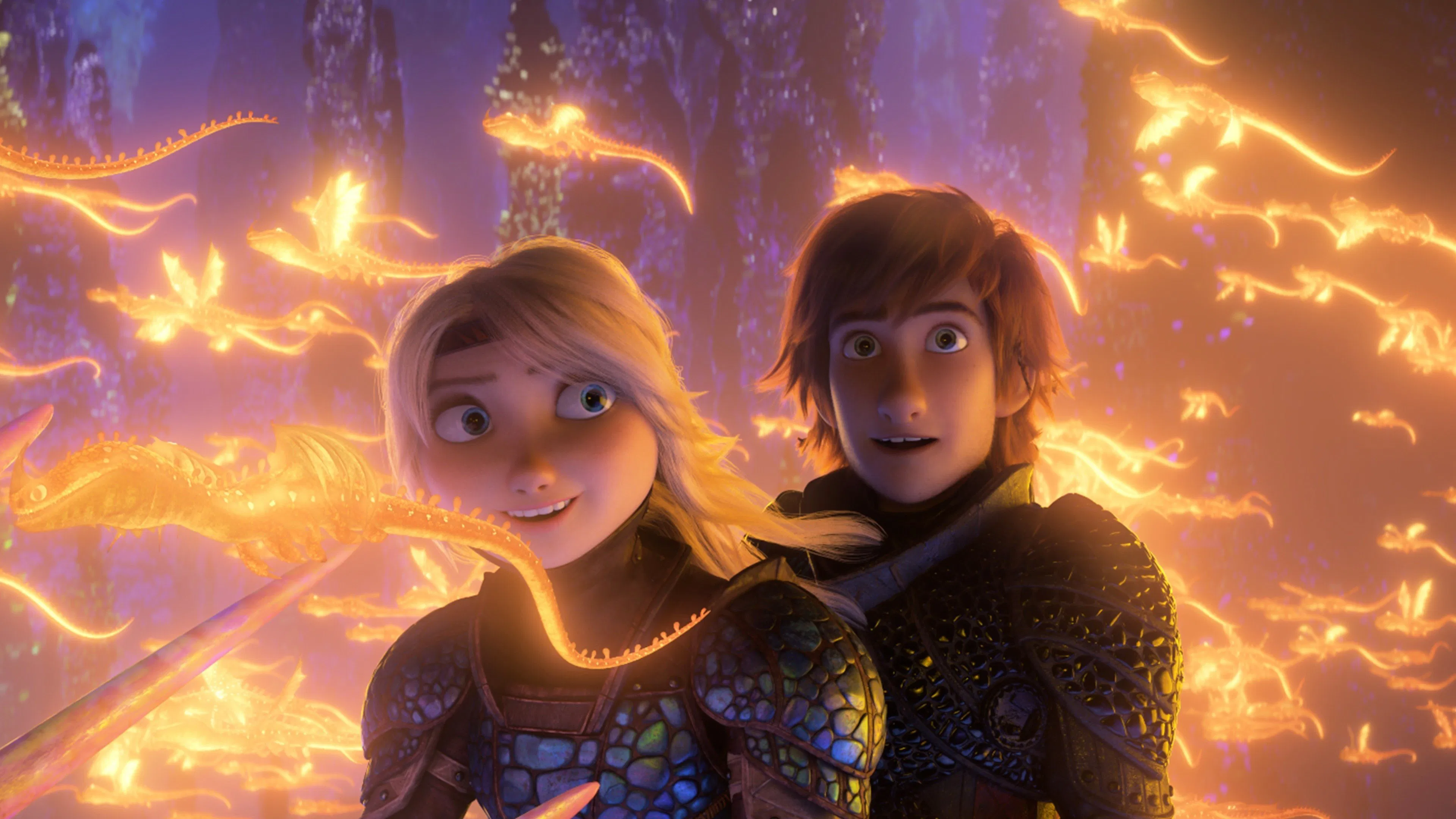히든 월드의 장면은 이번 시리즈에서 가장 스펙터클했어요. 빛이 흘러내리는 듯한 동굴, 드래곤들의 군무 같은 연출이 시리즈의 피날레에 잘 어울렸고요. 마을과 세계관의 확장이 자연스럽게 이뤄져서 시리즈의 마무리로 손색없었어요. 거기다 용의 세계 ‘히든 월드’는 심해 생물의 형광색과 지형에서 영감을 받아 디자인됐어서 그런지 동화적인 동시에 신비로운 분위기가 생생하게 살아났죠.