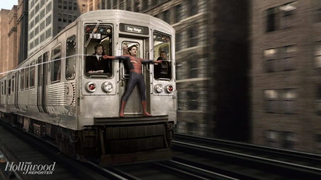 피터와 닥터 옥토퍼스이 빠르게 달리는 전철 위에서 벌이는 숨 막히는 결투 장면이 있습니다. 닥터 옥토퍼스이 전철을 폭주시키자, 피터는 몸을 던져 열차를 멈추려 합니다. 거미줄을 뻗어 양쪽 빌딩에 매달고, 필사적으로 열차를 붙잡아 세우는 데 성공하지만, 결국 힘이 다 빠져 결국 탈진합니다.