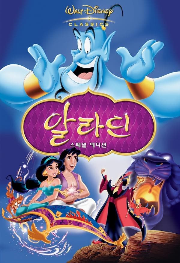 알라딘(1992)은 디즈니 애니메이션의 대표작 중 하나로, 르네상스 시대를 대표하는 작품 중 하나이며 매력적인 캐릭터, 환상적인 음악, 흥미진진한 스토리와 유머, 감동적인 메시지가 조화를 이루는 영화입니다.